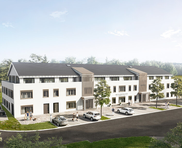 Fachärzte verschiedener Fach­rich­tung­en, ergänzendes thera­peutisches Angebot und sportlichen Ausgleich finden Patienten und gesundheits­orientierte Menschen ab sofort in dem neuen MEDICENTER SÜD in Straßlach.